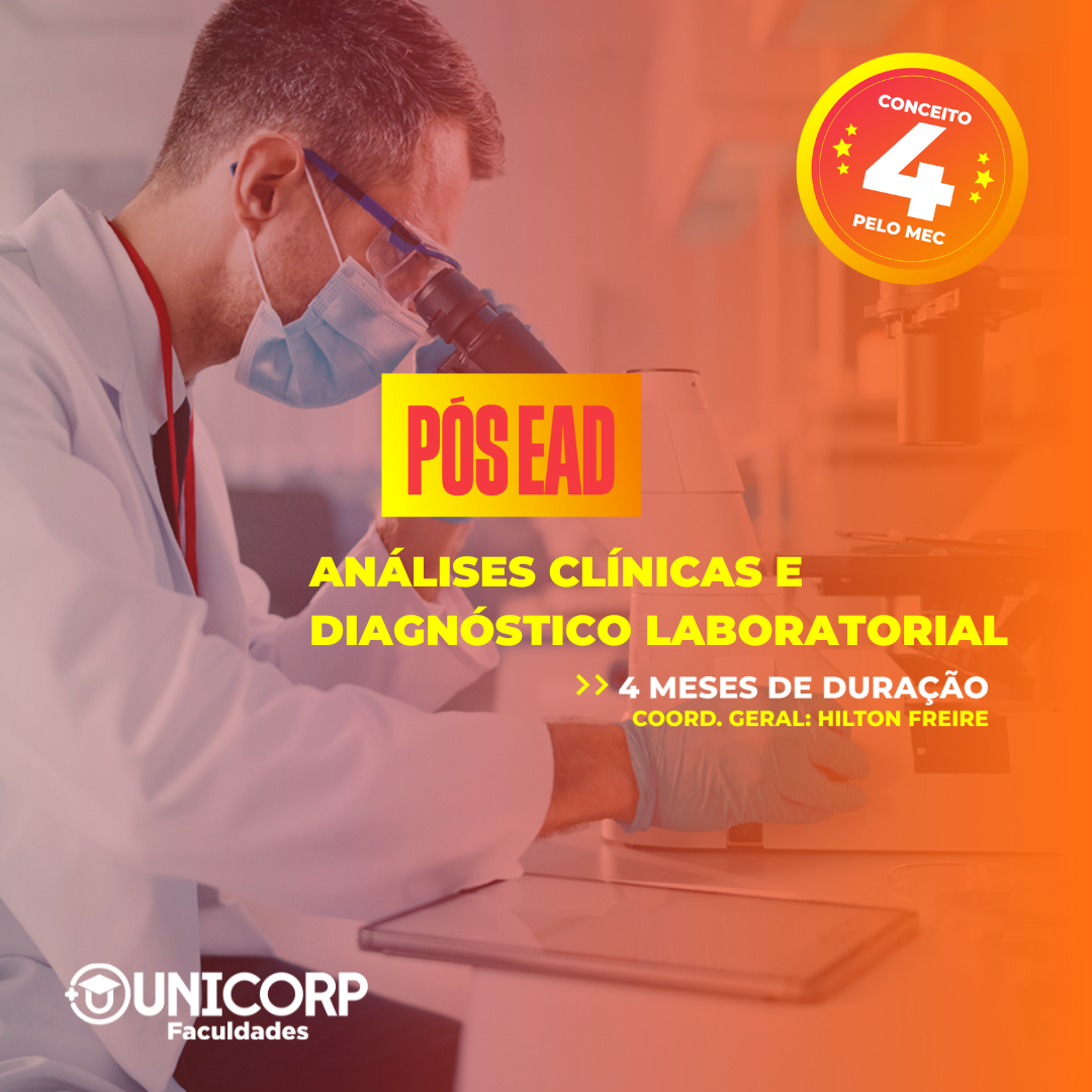 A Especialização em Análises Clínicas e Diagnóstico Laboratorial (EAD), tem como objetivo preparar você para assumir importantes posições no mercado de trabalho da área da saúde, adquirindo uma visão ampla sobre as competências, habilidades e conhecimentos necessários para atuar no diagnóstico e monitoramento das diversas patologias, realizar exames laboratoriais, utilizar metodologias manuais e automatizadas, podendo atuar em laboratórios de análises clínicas e de imagem, tanto na rede de serviços privada quanto em núcleos de imagem e serviços laboratoriais inseridos na rede hospitalar. Tendo como público-alvo quem é graduado em qualquer área.